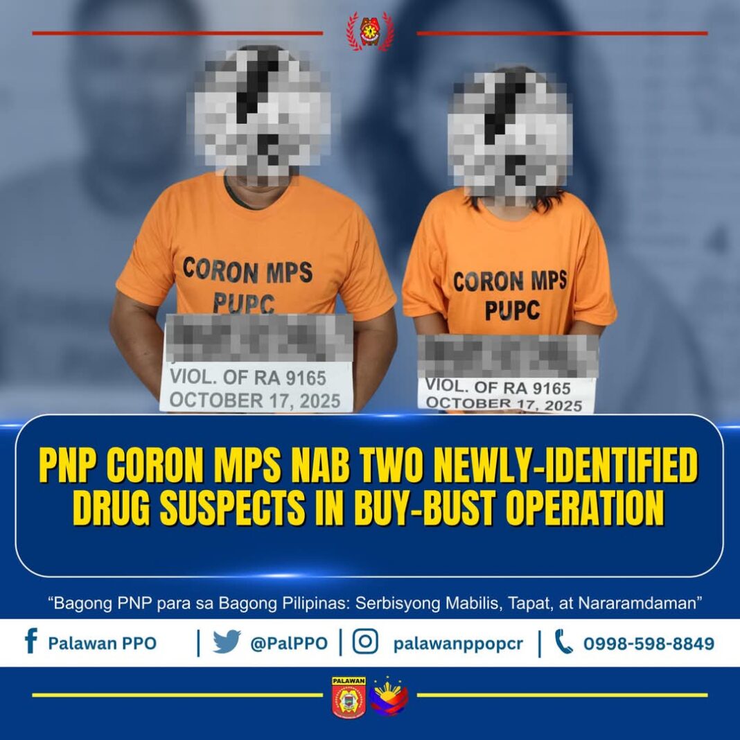 Ang dalawang suspek na mga bagong tulak, ay kinilalang sina alyas Vin at alyas Marie nasa hustong gulang, residente ng Bgy. Guadalupe, Coron Palawan.