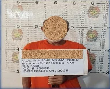 Naaresto ang suspek noong October 01, 2025 sa bisa ng bench warrant of arrest na inisyu ng MCTC of 4th Judicial Region, Brooke’s Point–Española, Palawan, na may petsang September 24, 2025, dahil sa kasong paglabag sa Section 4 ng R.A 8048, as amended by Sec.1 f R.A No. 10593.