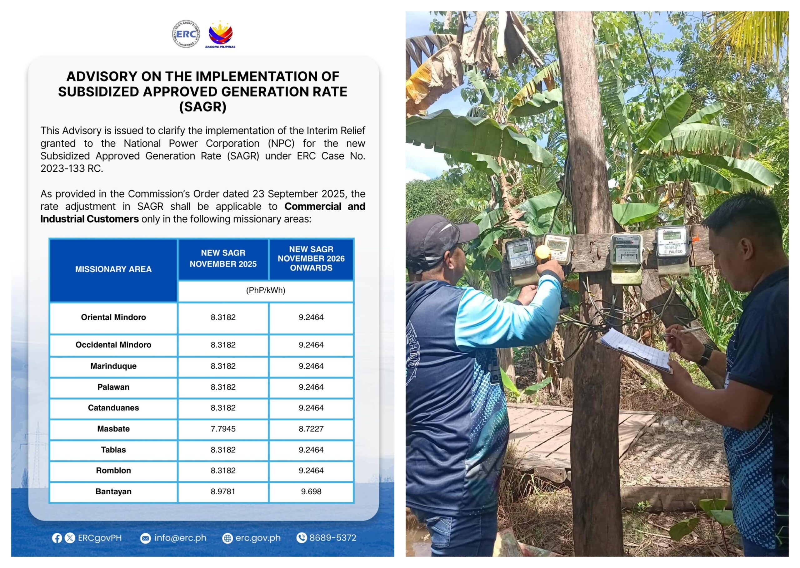 Matapos aprubahan ng Energy Regulatory Commission (ERC) ang interim relief ng National Power Corporation (NPC), simula sa November 2025 ay tataas na ang sisingiling Subsidized Approved Generation Rate (SAGR) ng Palawan Electric Cooperative (PALECO) sa mga COMMERCIAL at INDUSTRIAL consumers nito.
